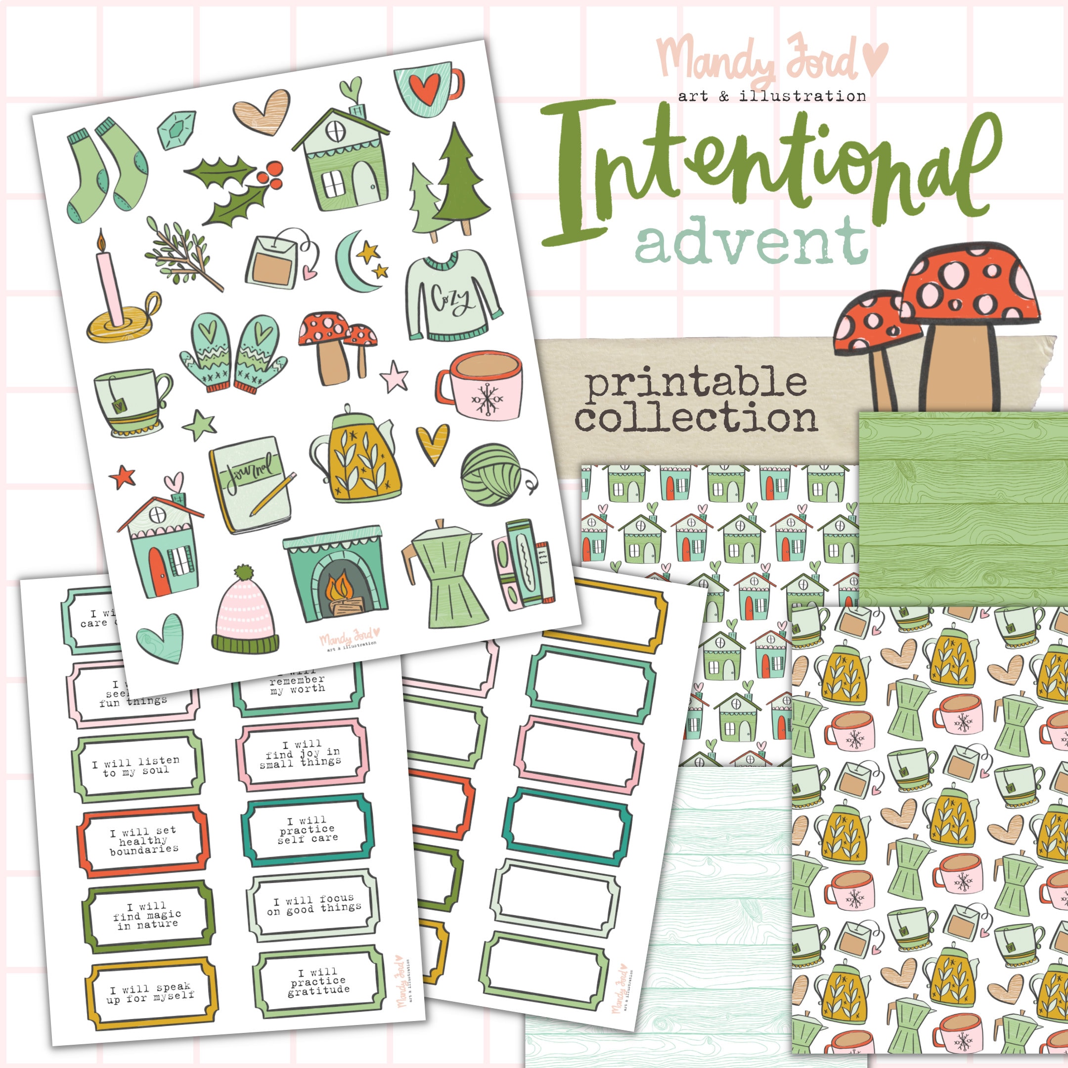 Intentional Advent Printable Journaling Kit Self Care Stickers
