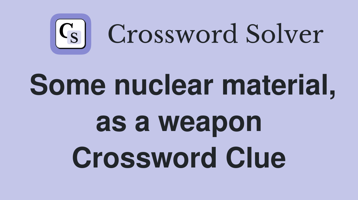 Some nuclear material as a weapon Crossword Clue Answers Crossword