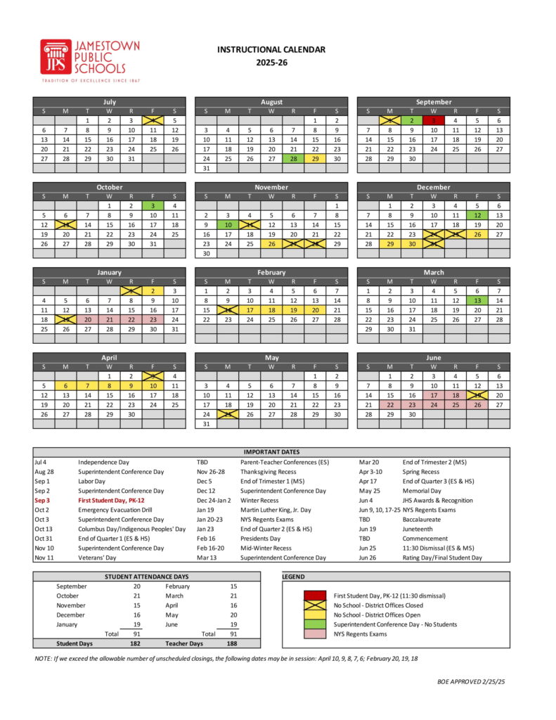 JAMESTOWN JPSNY School District Calendar 25 26 revised EduCounty