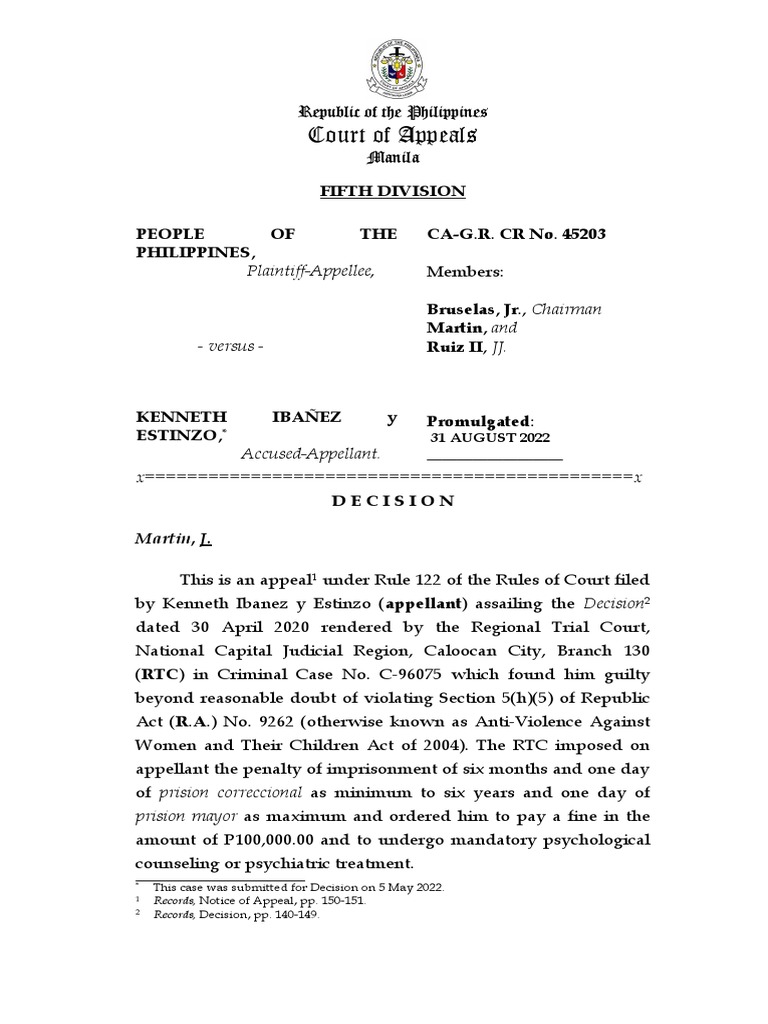 Court of Appeals: Fifth Division People OF THE Philippines CA G R CR