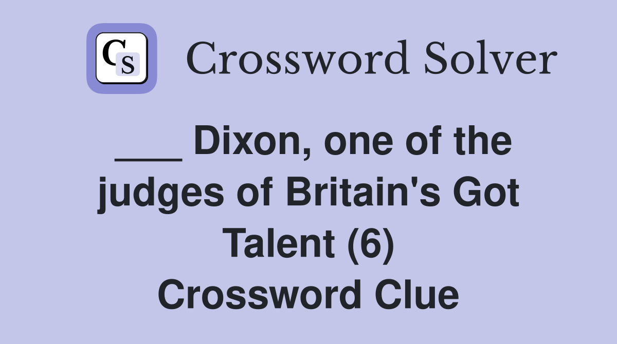 Dixon one of the judges of Britain s Got Talent (6) Crossword Clue