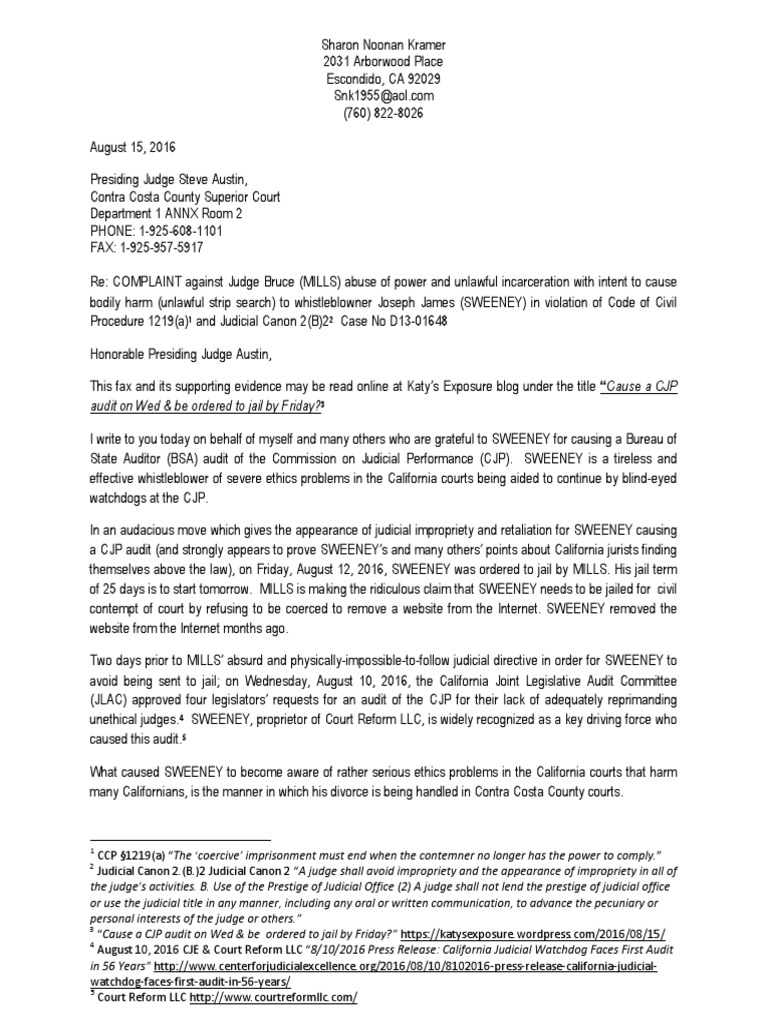 Judge Bruce C Mills Misconduct Allegations: Complaint to Presiding