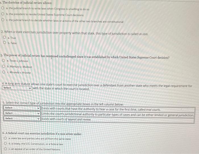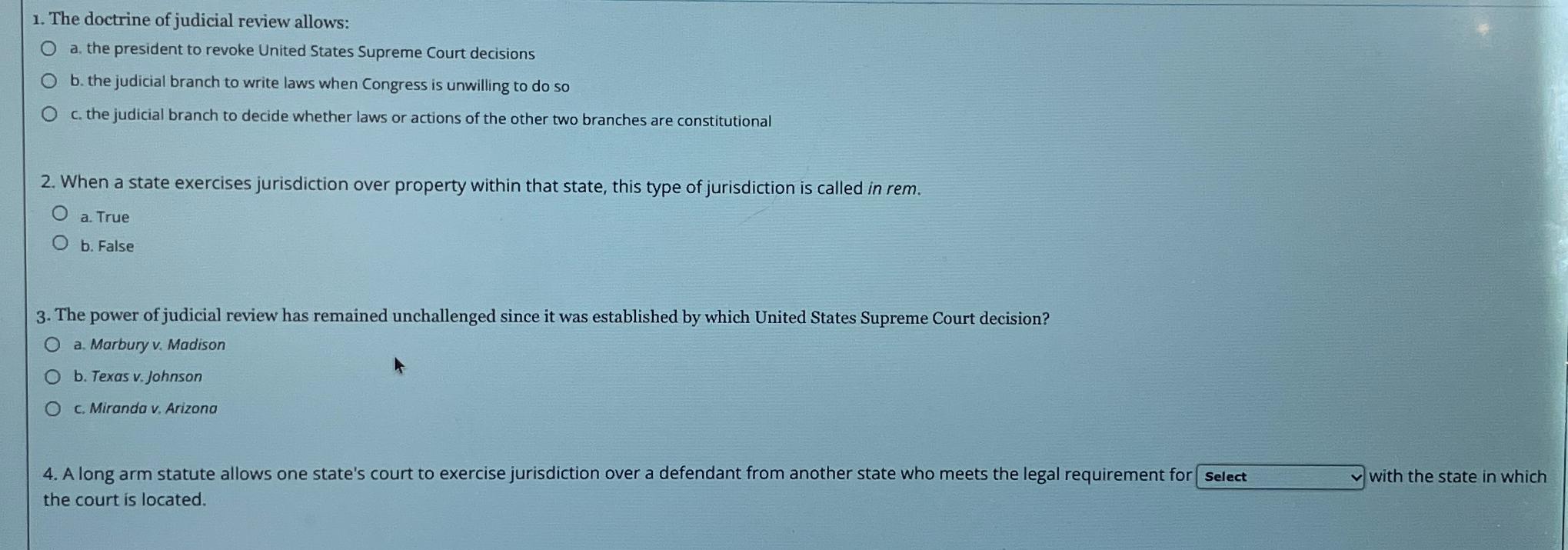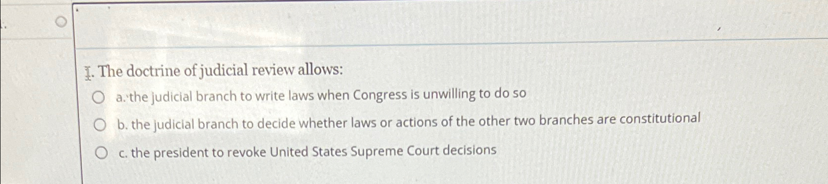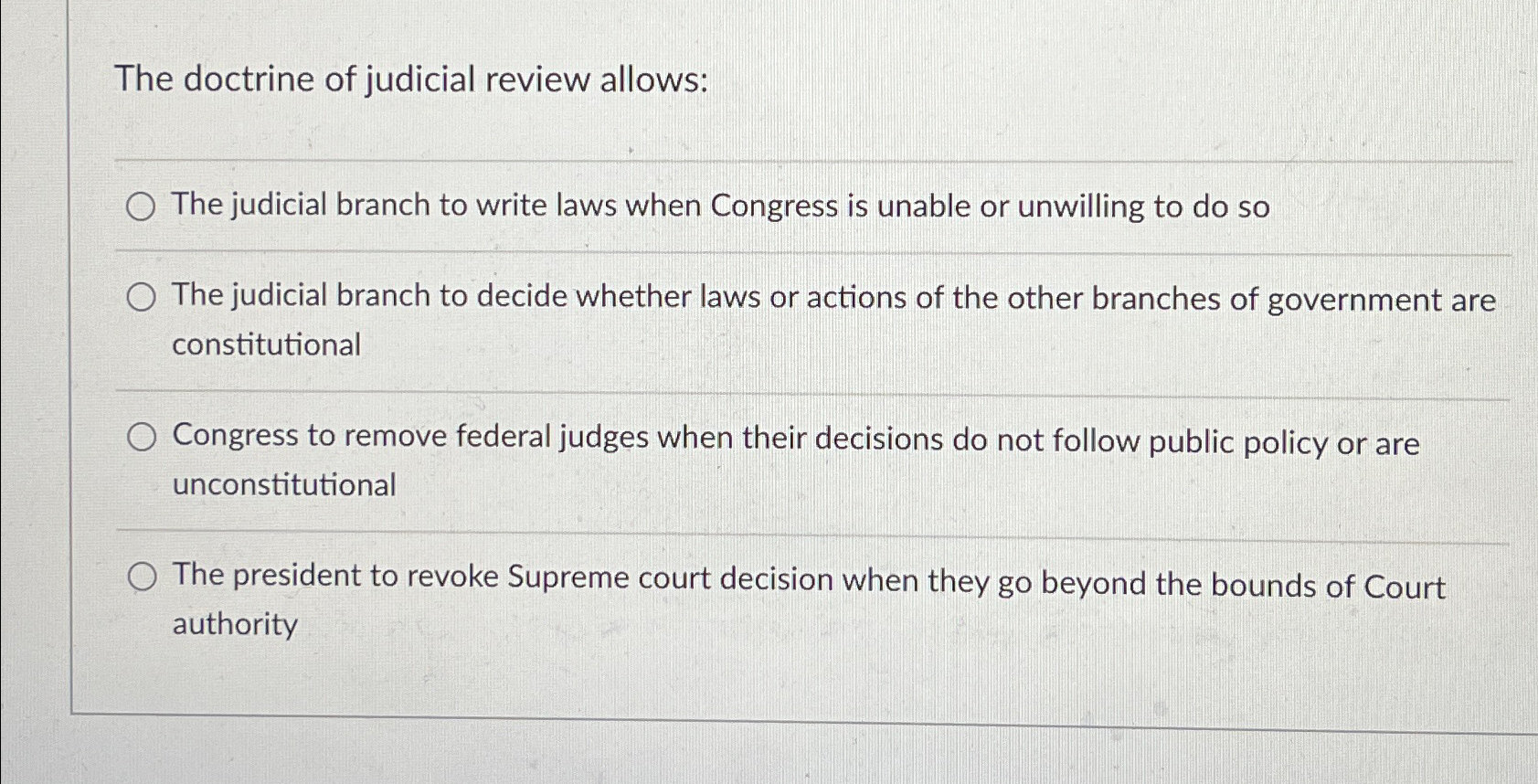 Solved The doctrine of judicial review allows:The judicial Chegg com