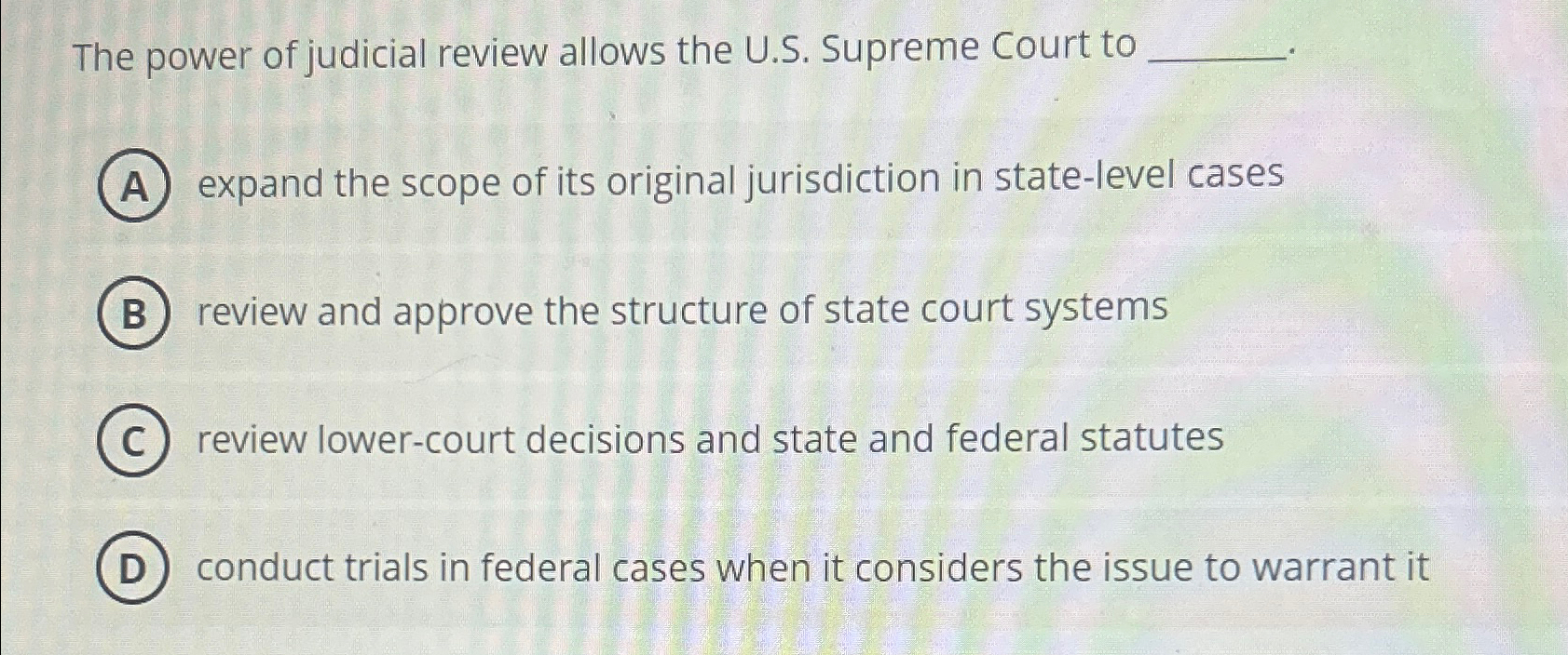 Solved The power of judicial review allows the U S Supreme Chegg com