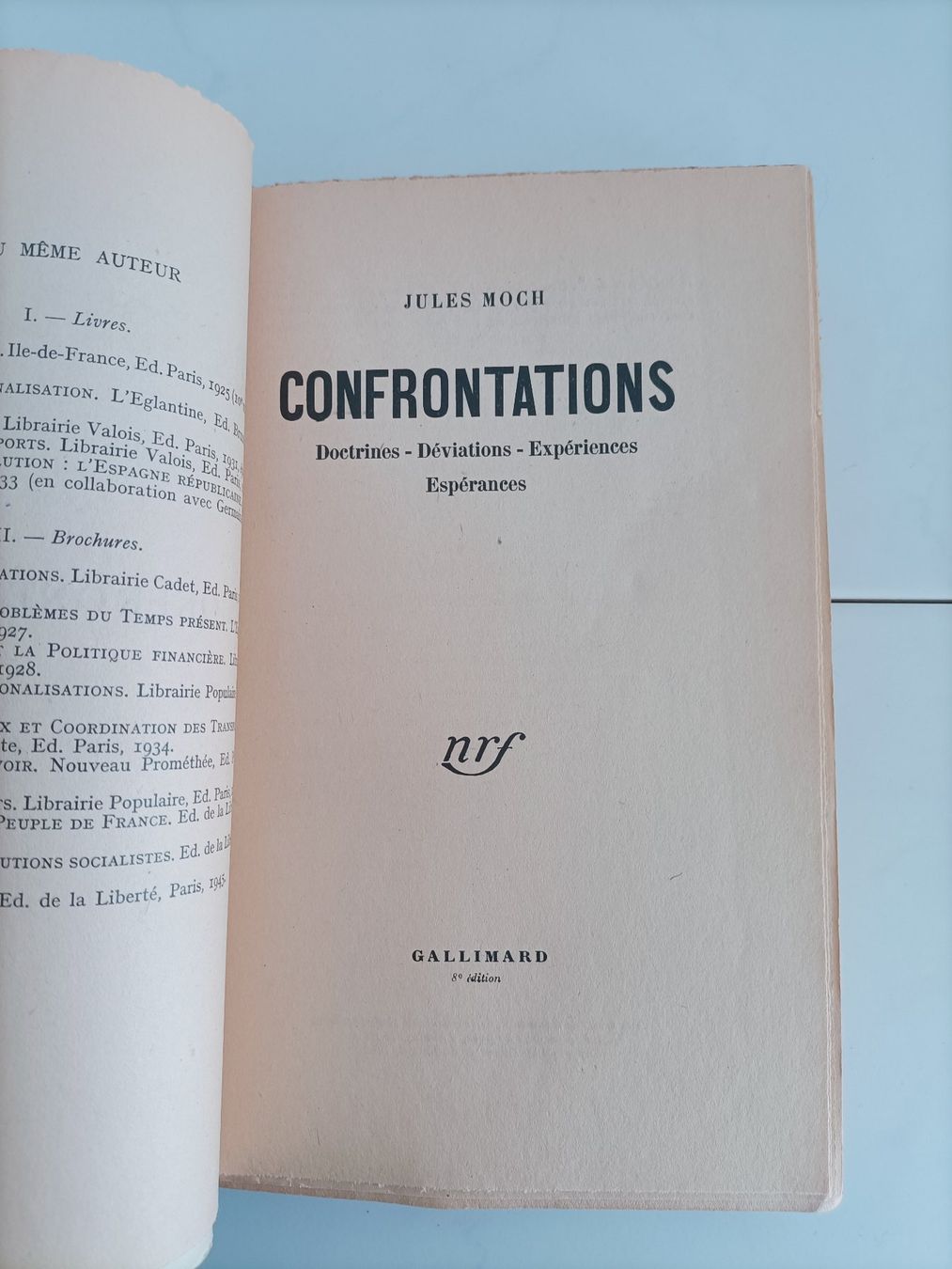 Confrontations / Jules Moch / NRF Gallimard 1952 (D #39 occasion) à crans
