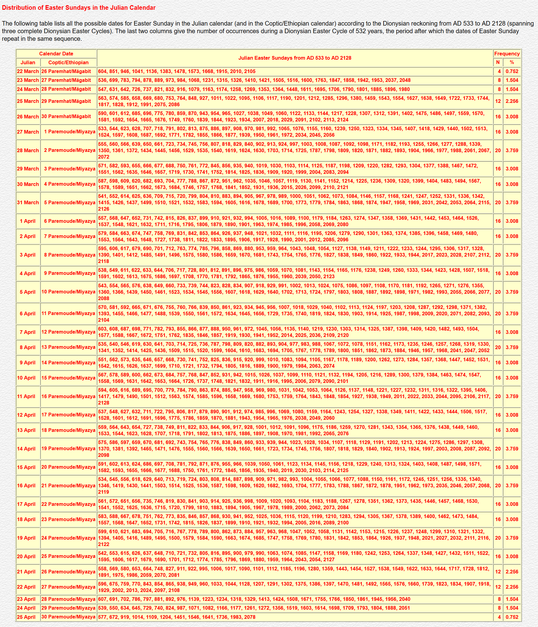 Easter Tables (Julian Orthodox Western) from Nicaea to A D 4100