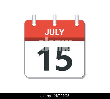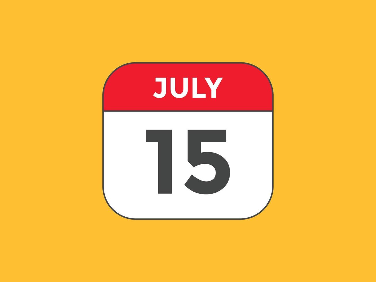 15 July Vector Icon Calendar Day 15 Date of July Fifteenth Day of