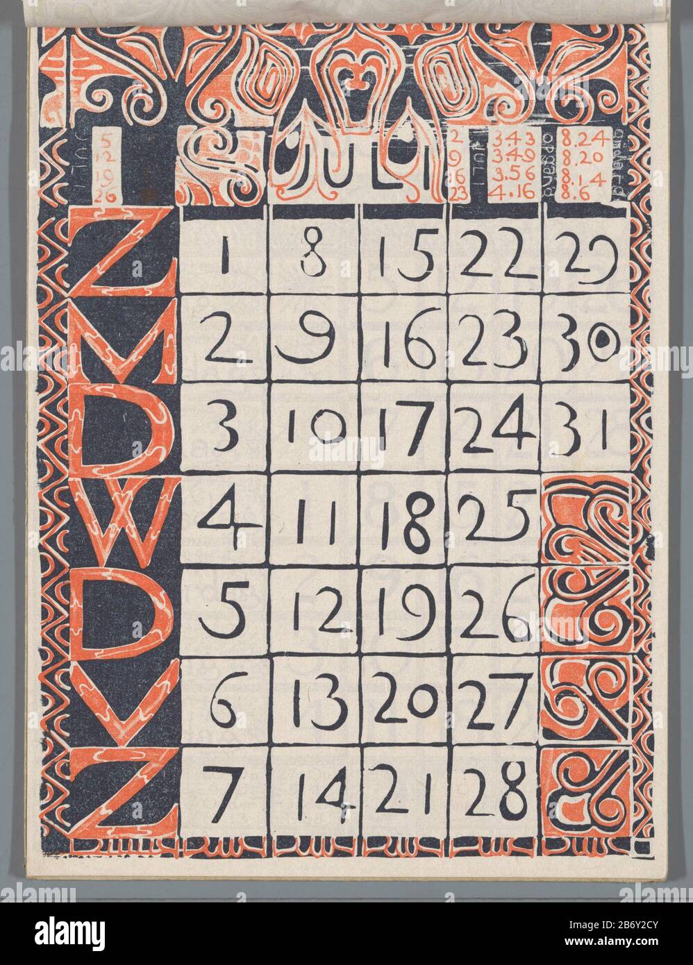 Kalenderblad juli 1900 Calendar Journal July 1900 Object Type : print
