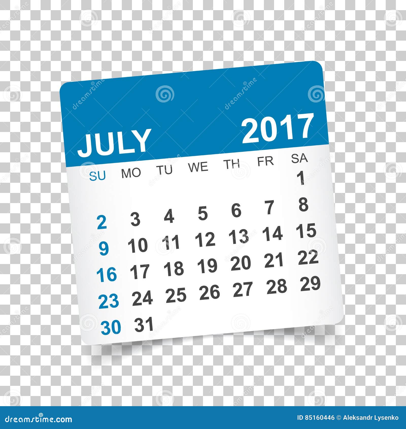 July 2017 calendar vector stock vector Illustration of month 85160446