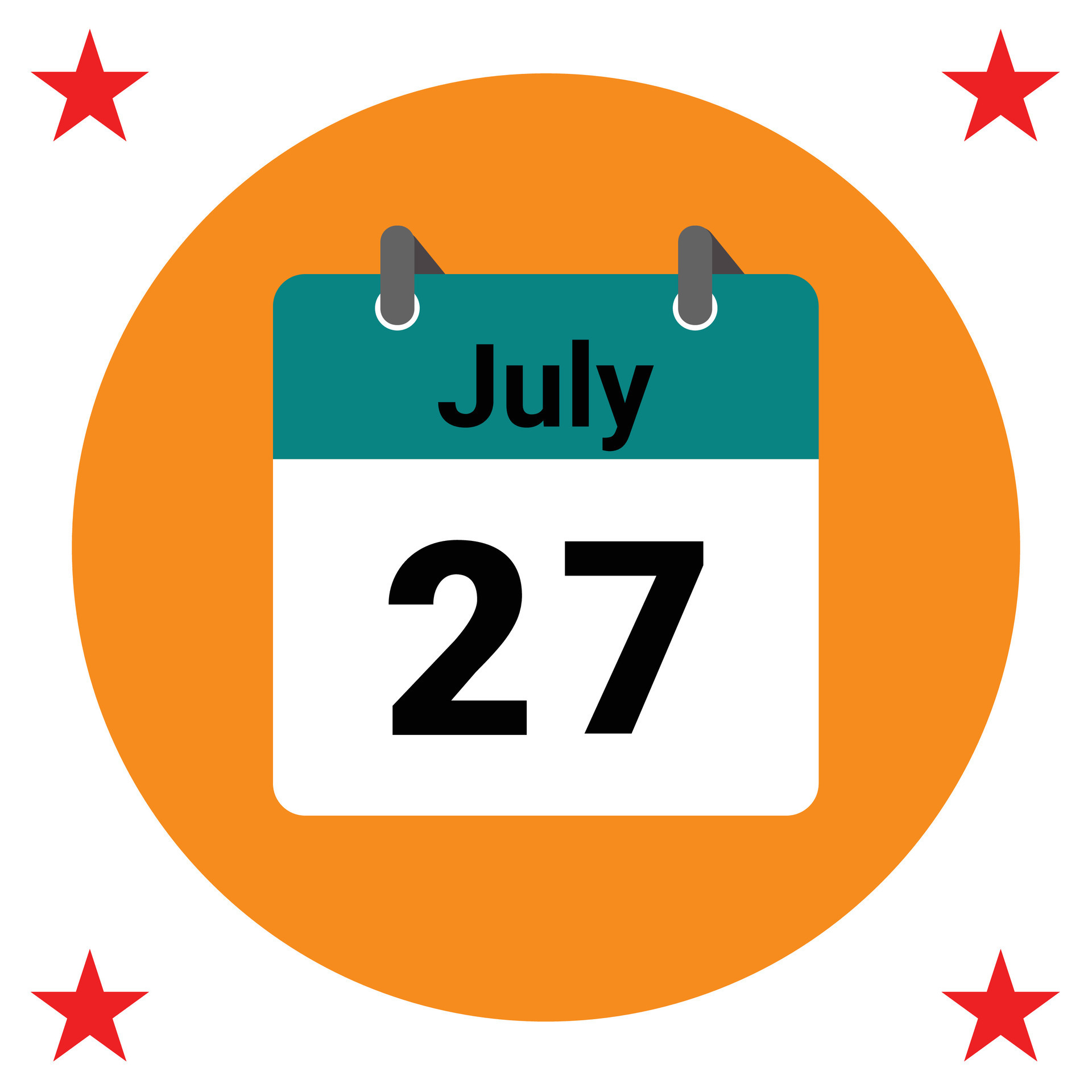 27 July Vector Icon Calendar Day 27 Date of July Twenty Seventh Day