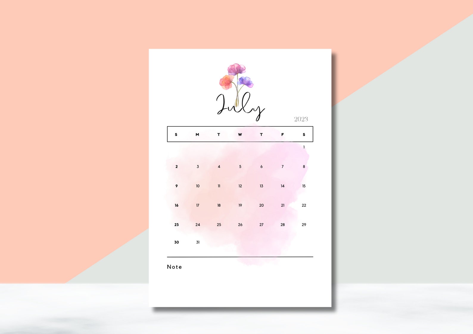 Printable July 2023 Calendar Aesthetic Wall Calendar A4 Size Digital