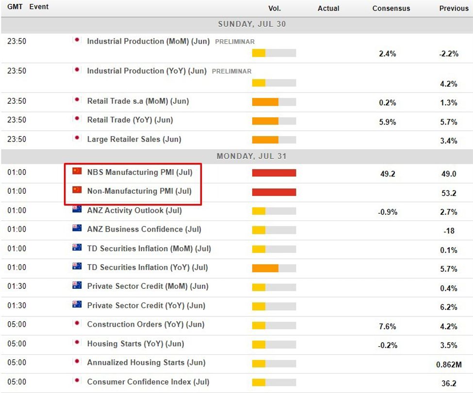 Economic calendar in Asia 31 July 2023 China official PMIs for July