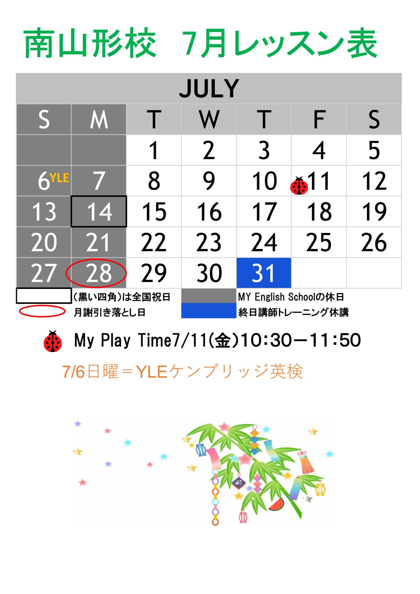 南山形校7月レッスンカレンダー MY英語スクールBlog