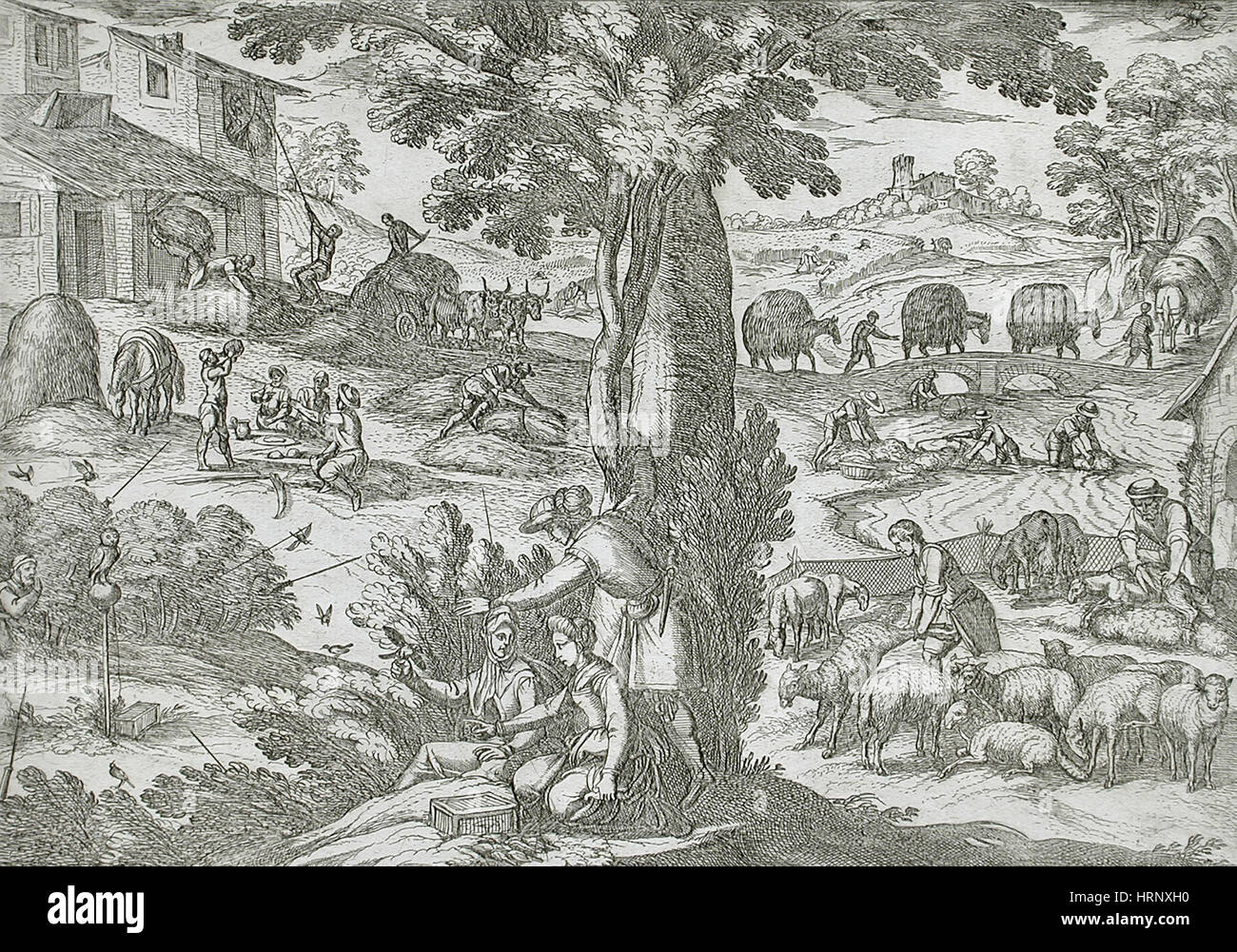 June Sheep Shearing 16th Century Calendar Stock Photo Alamy