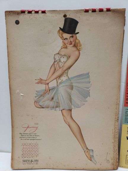 1946 Calendar Pages Featuring Pin Up Illustrations and Advertising