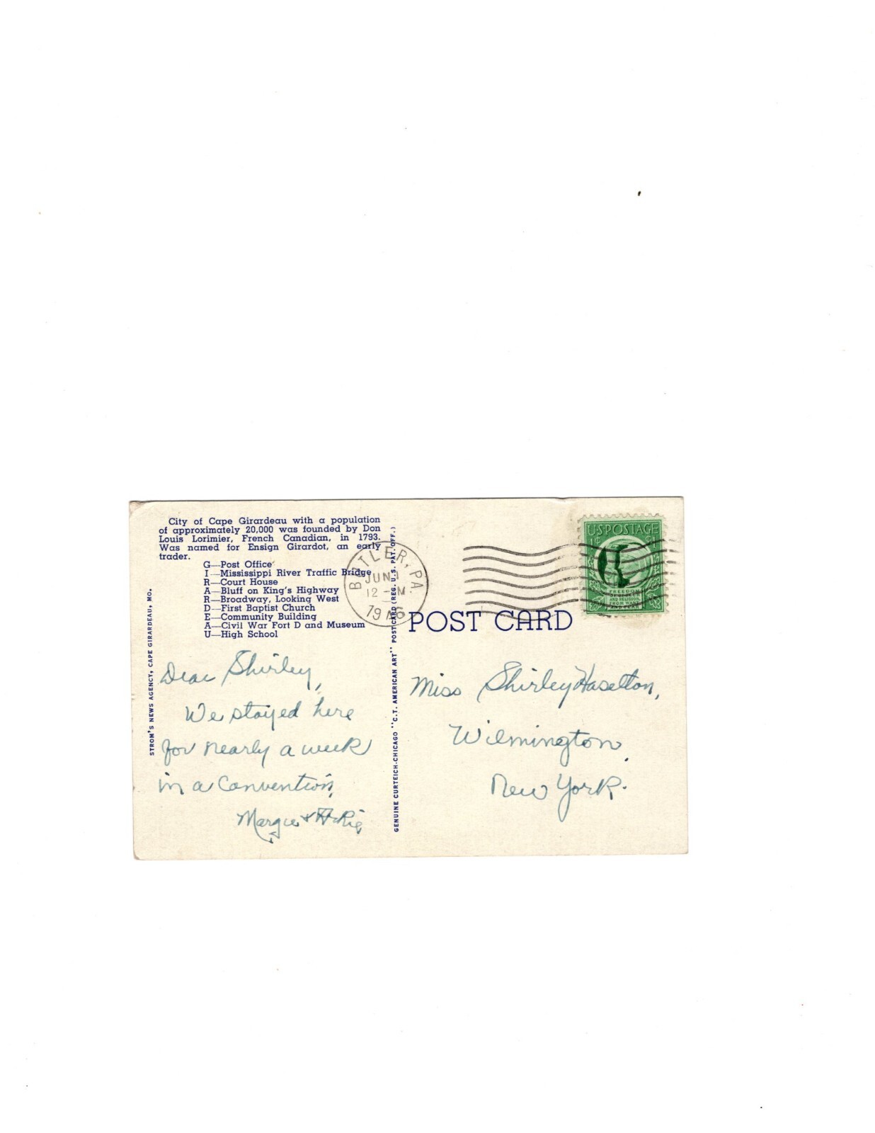 Greetings From Girardeau Missouri Color Postcard Large Letters Posted