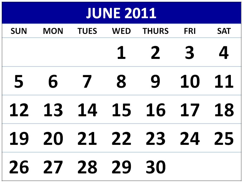 June 2011 Calendar Printable Free Download