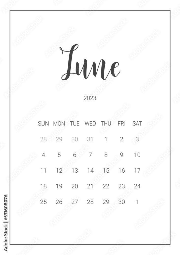 Calendar June 2023 Vector Hd Images Calendar June Cute Style Calendar