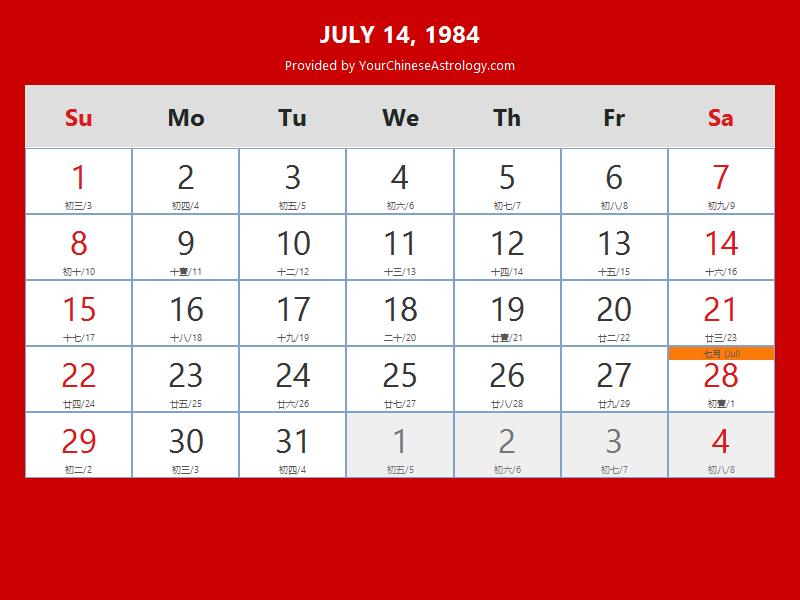 Chinese Calendar Jul 14 1984: Auspicious Things to Do and Hours Bazi