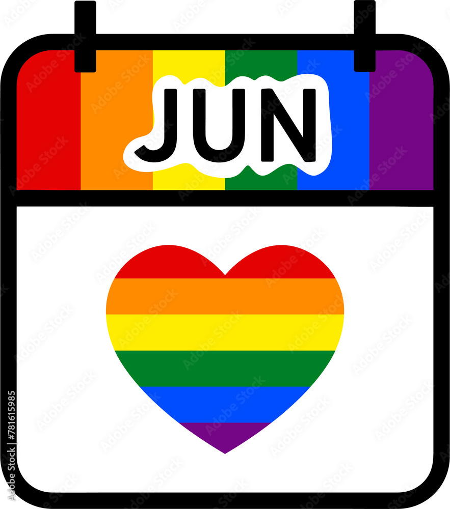 pride month calendar page icon in LGBT rainbow colors june 2024 Stock