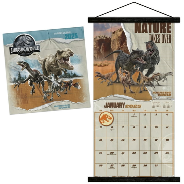 Trends International 2025 Jurassic World Wall Calendar Magnetic Frame