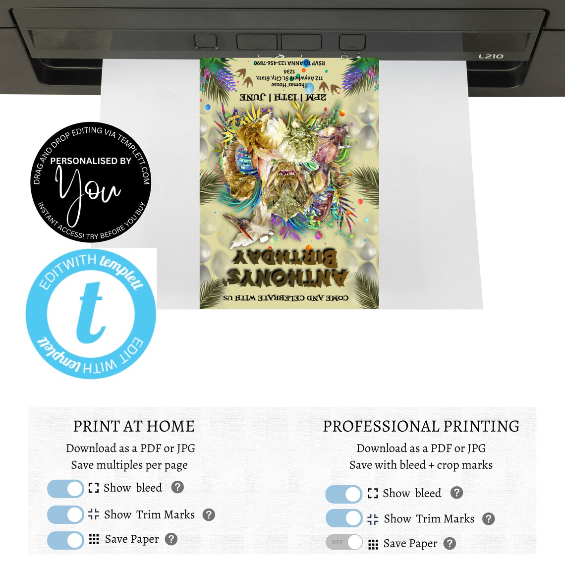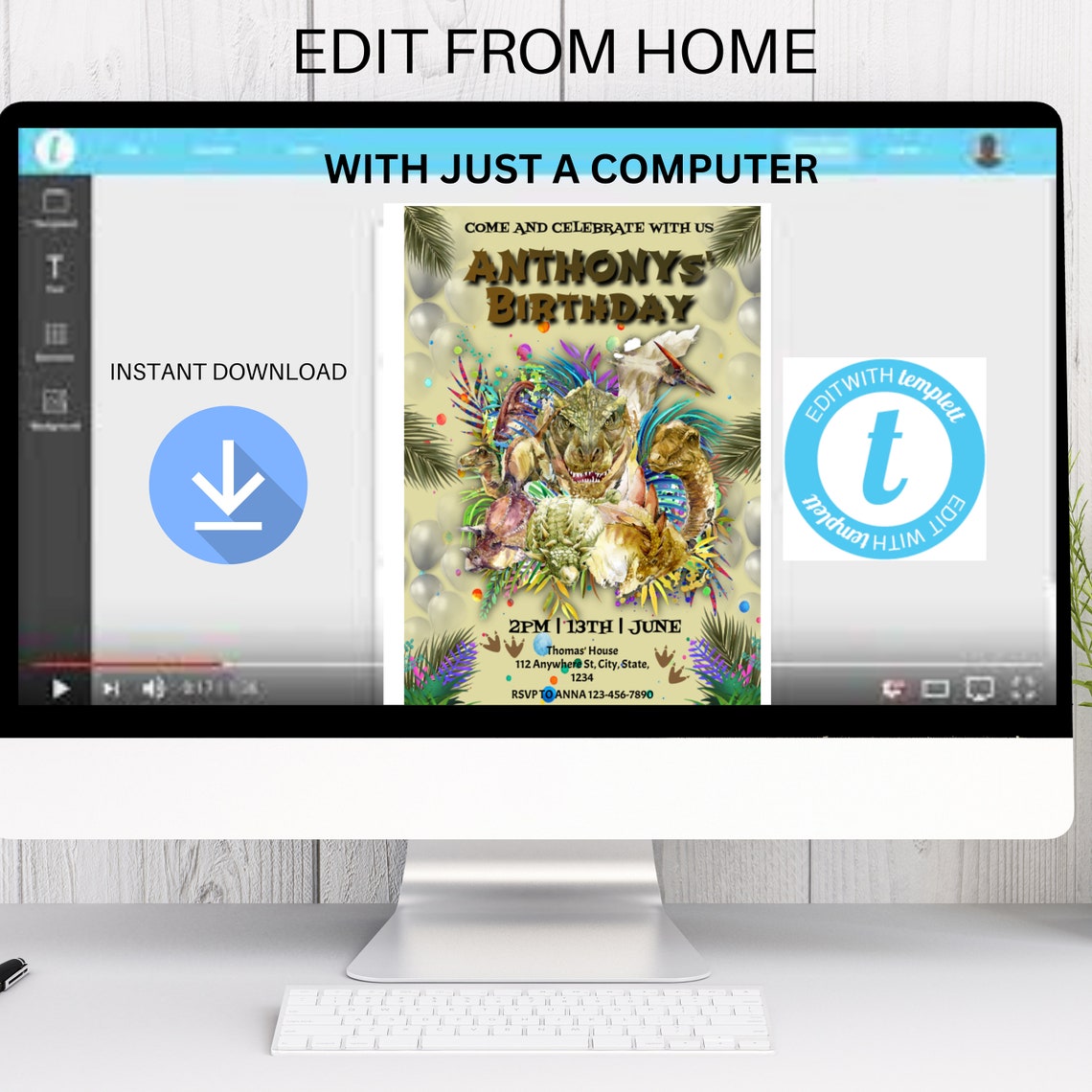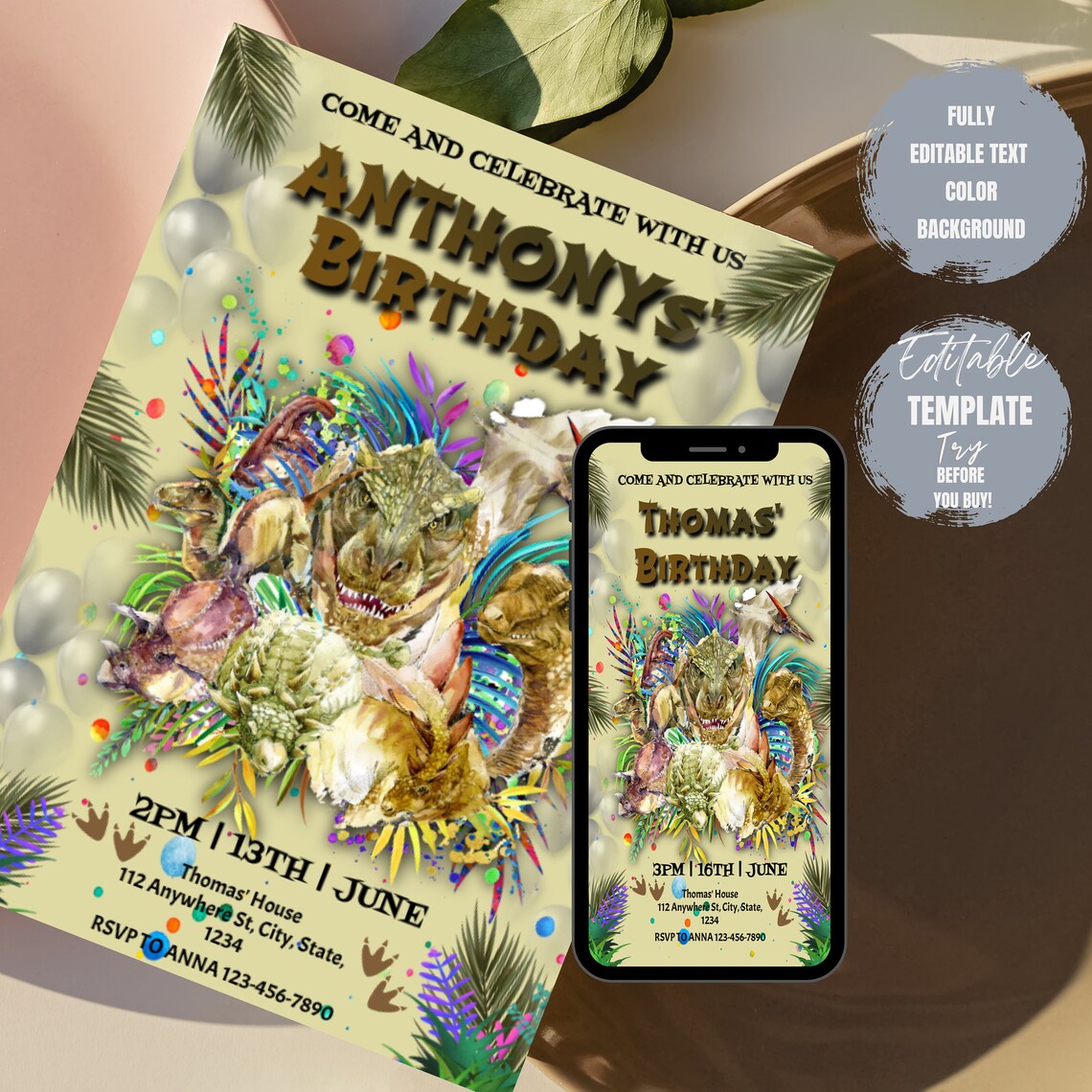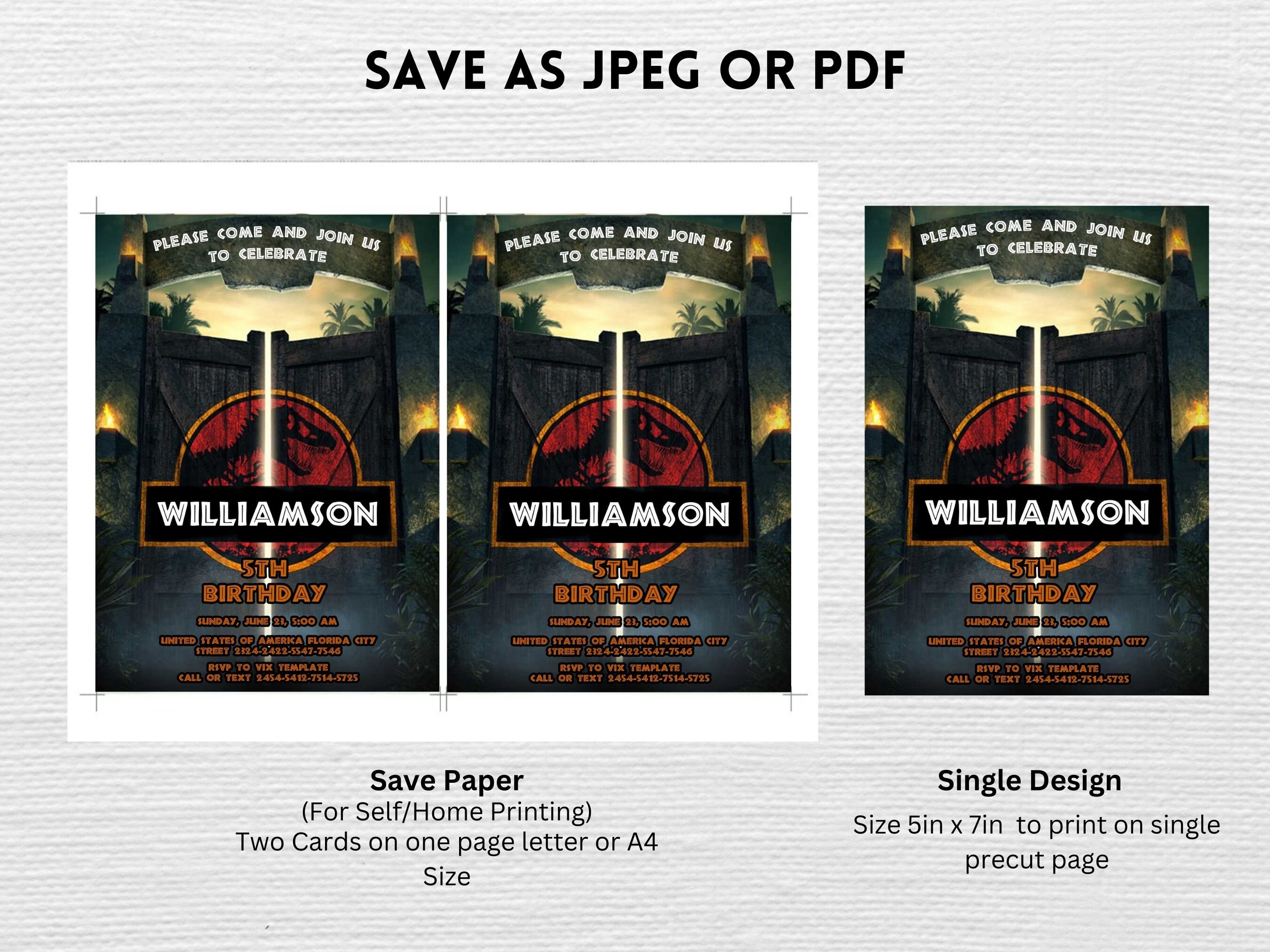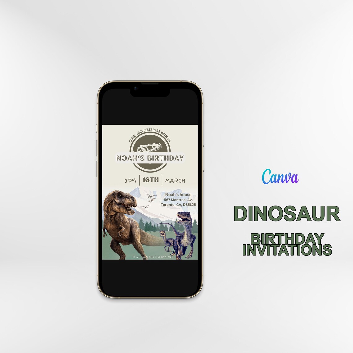 Jurassic World Birthday Invitation: Dinosaur Theme Editable Canva