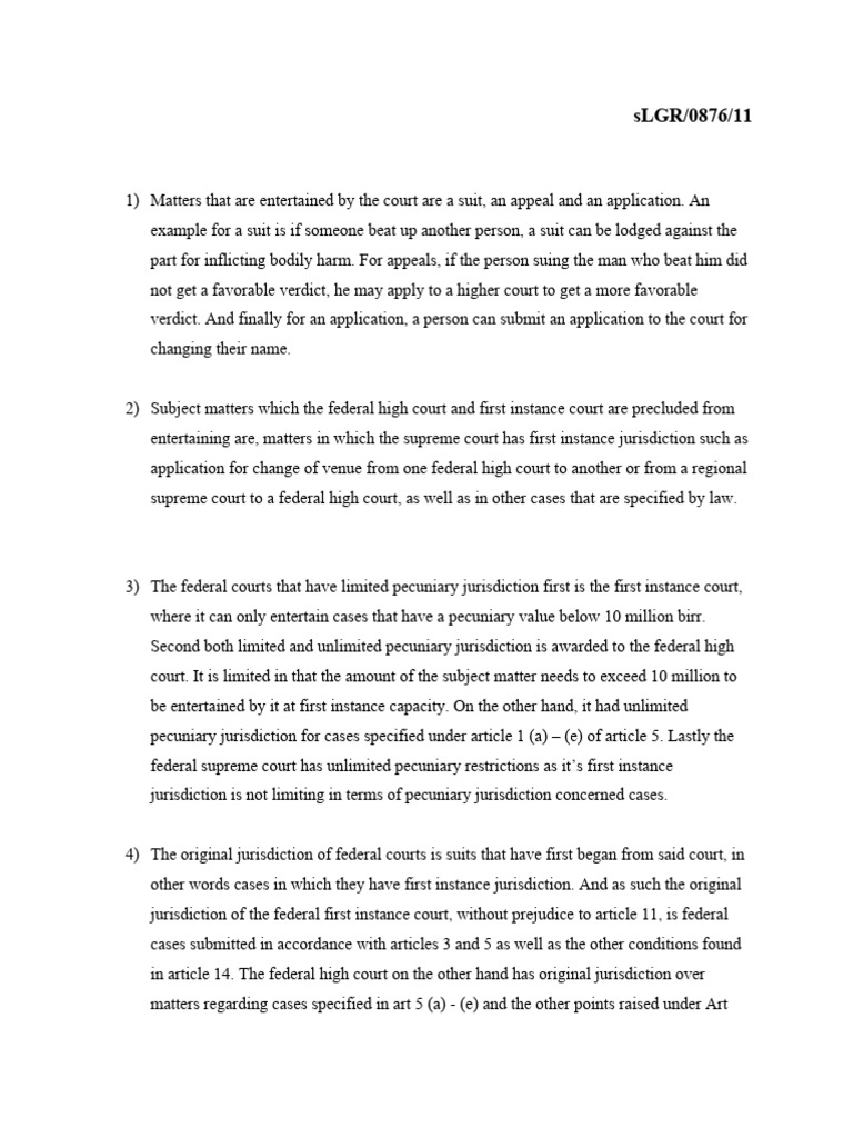 Civil Procedure Notes and answers Jurisdiction 2 Types of courts to