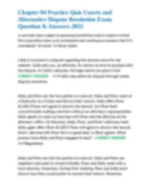 Chapter 04 Practice Quiz Courts and Alternative Dispute Resolution Exam