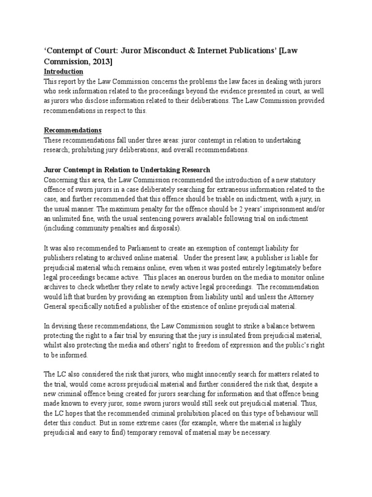 Summary of Law Commission #39 s #39 Contempt of Court Juror Misconduct