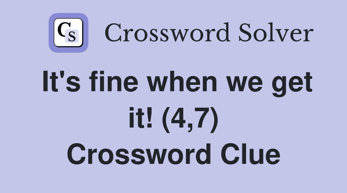 It #39 s fine when we get it (4 7) Crossword Clue Answers Crossword Solver