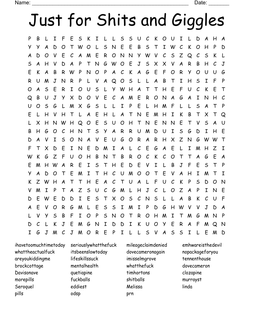 Just for Shits and Giggles Word Search WordMint