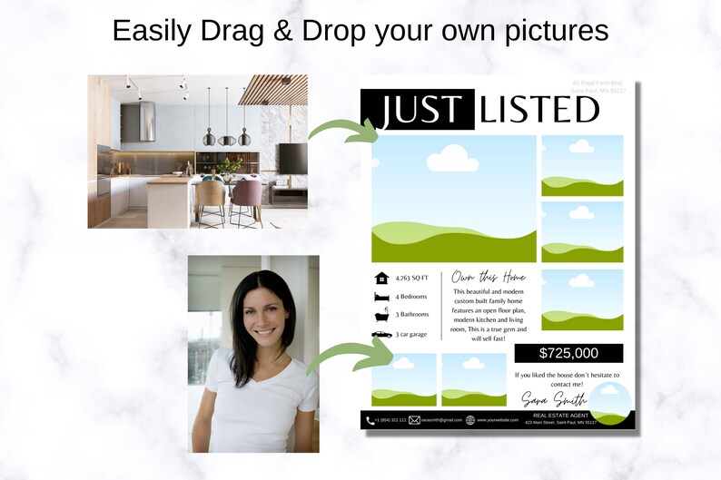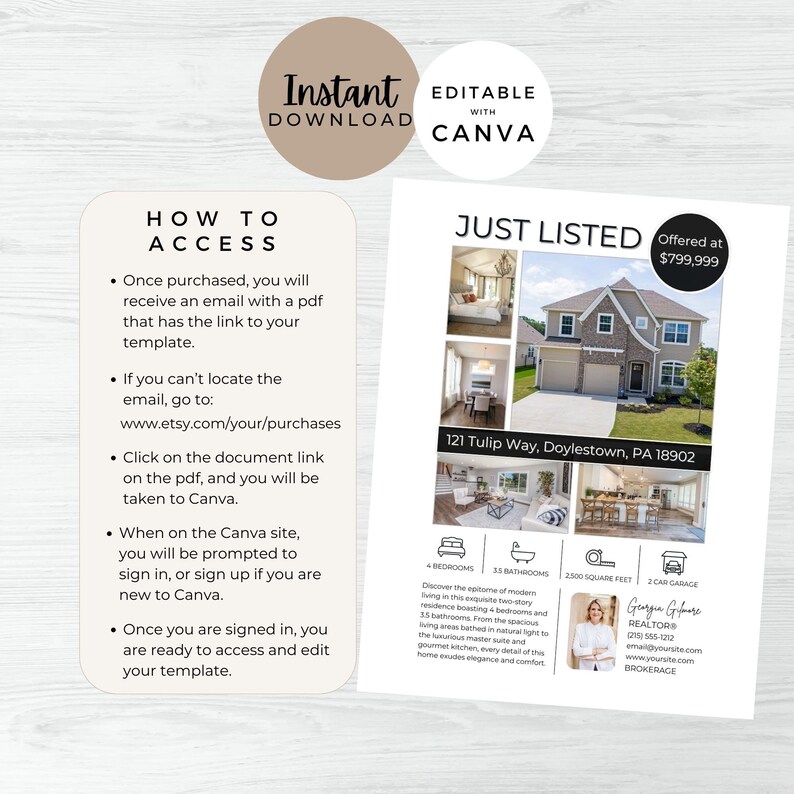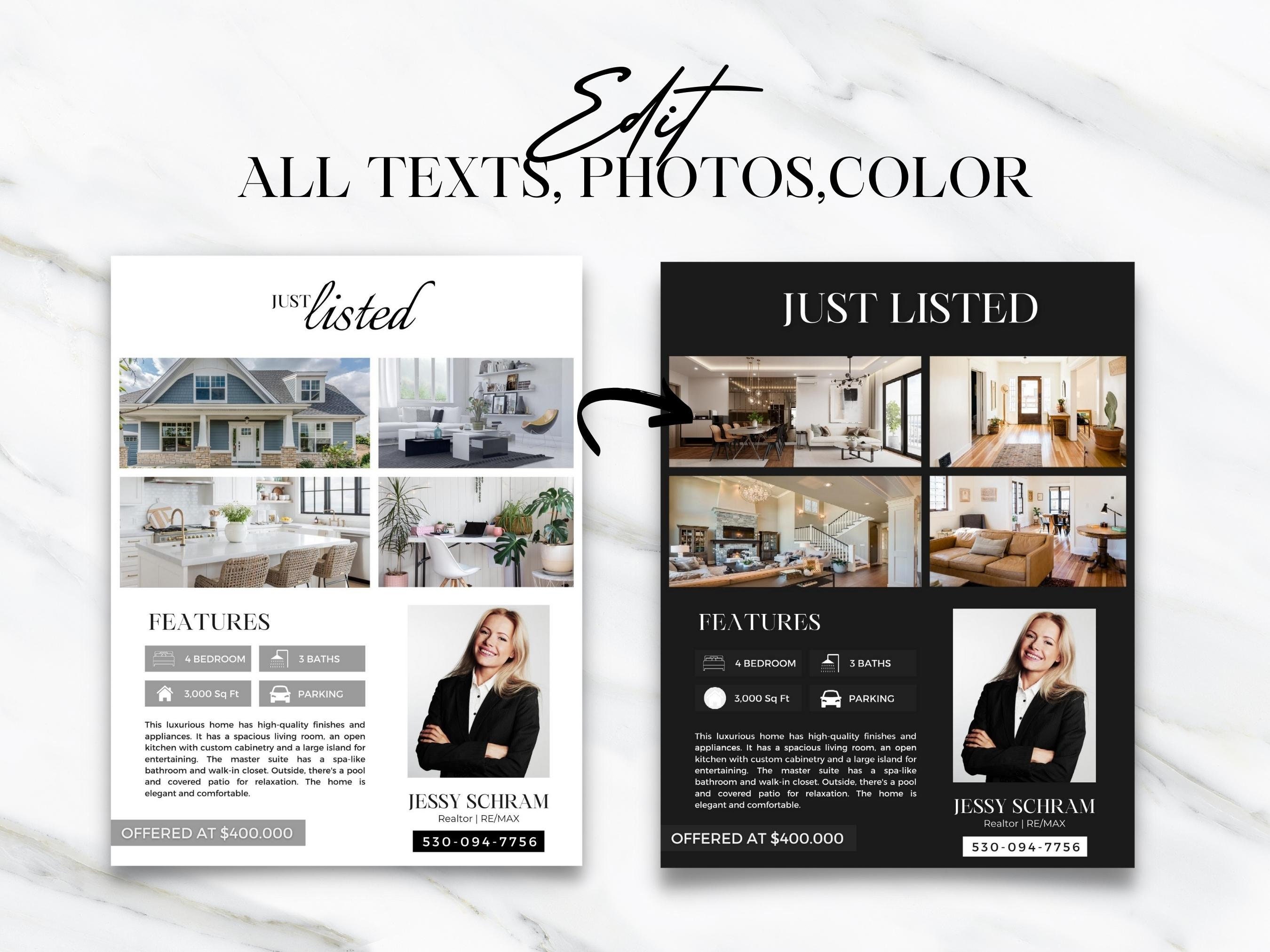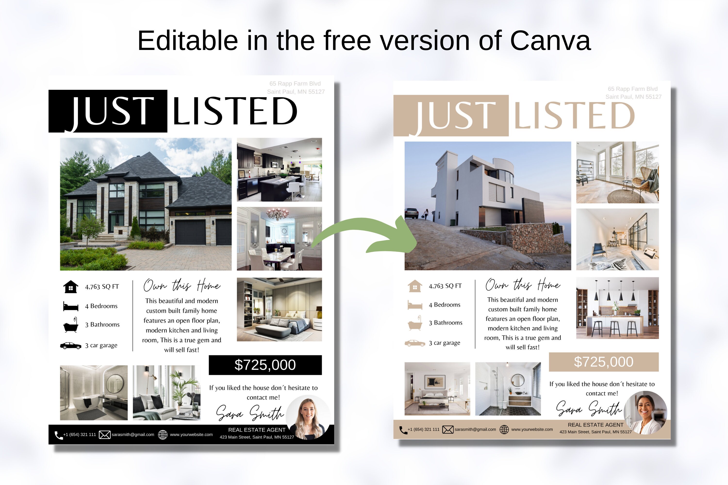 Just Listed Flyer Template for Real Estate Agents Edit in Canva Etsy