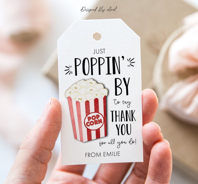 EDITABLE Just POPPIN by to Say Thank You Popcorn Gift Tags Etsy