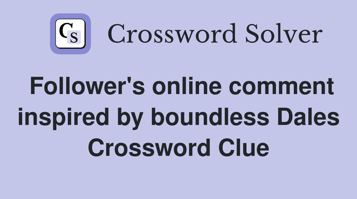 Follower #39 s online comment inspired by boundless Dales Crossword Clue