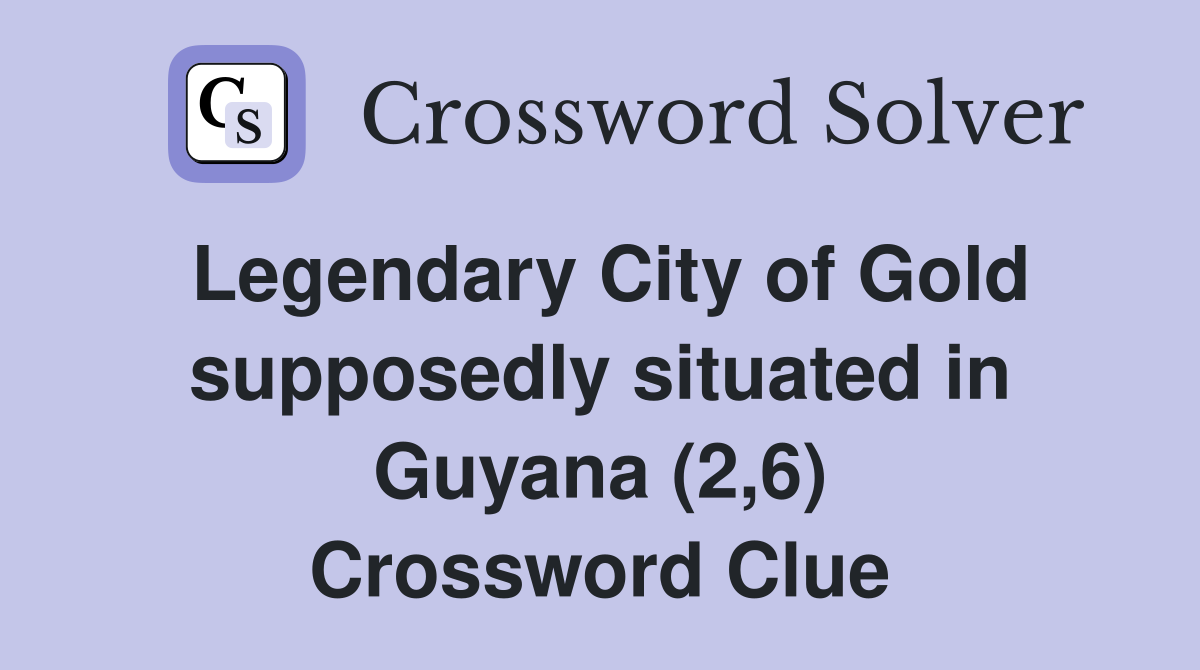 Legendary City of Gold supposedly situated in Guyana (2 6) Crossword