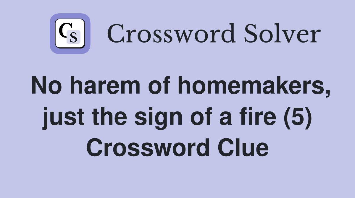 No harem of homemakers just the sign of a fire (5) Crossword Clue
