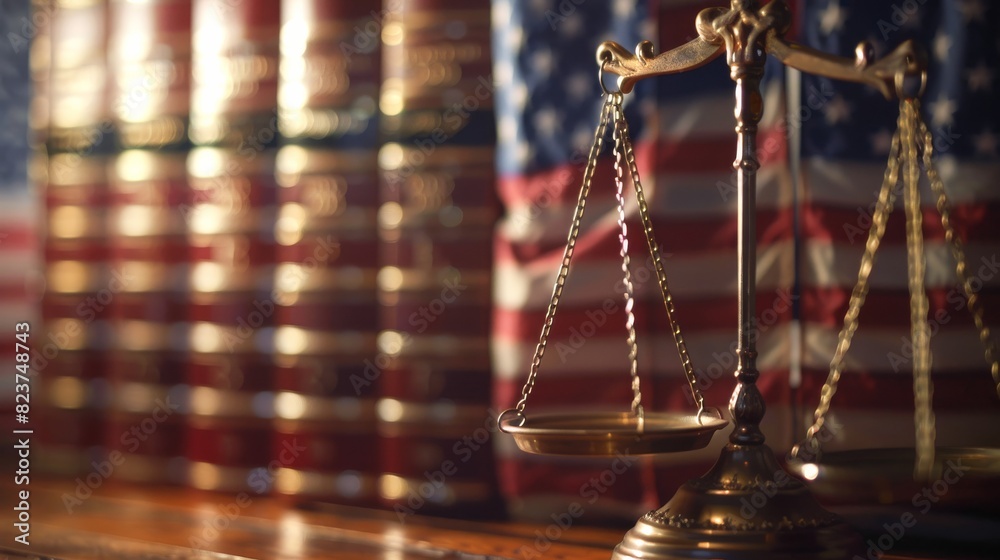 Scale of Justice Symbol American Flag Background Law Books Legal