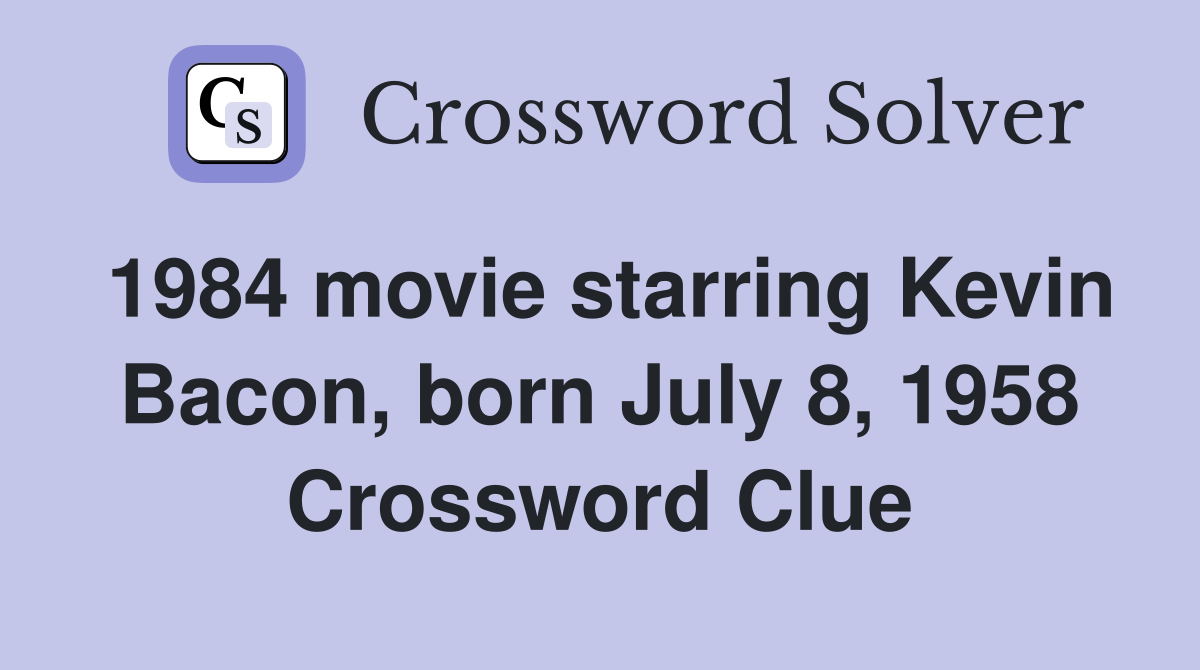 1984 movie starring Kevin Bacon born July 8 1958 Crossword Clue