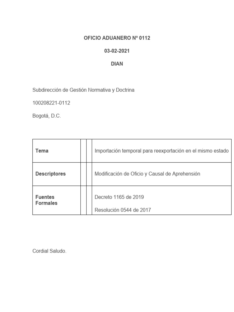 OFICIO ADUANERO #0112 Licencia Importacion Temporal Largo Plazo PDF