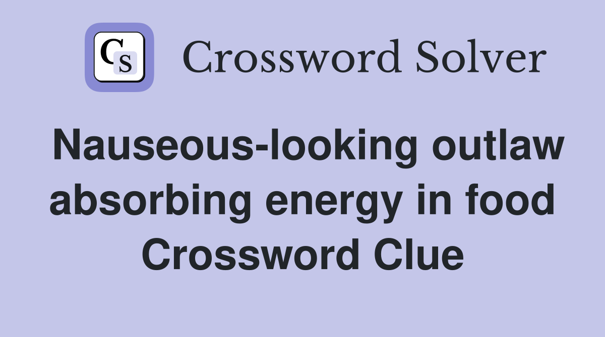 Nauseous looking outlaw absorbing energy in food Crossword Clue