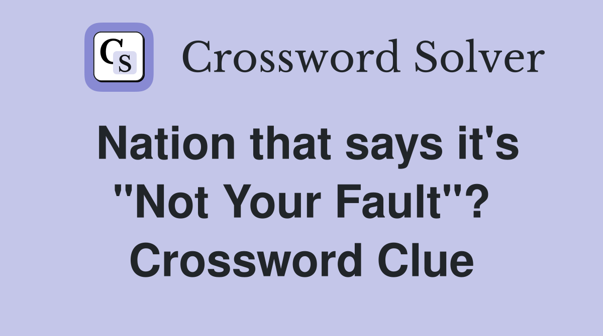 Nation that says it #39 s quot Not Your Fault quot ? Crossword Clue Answers