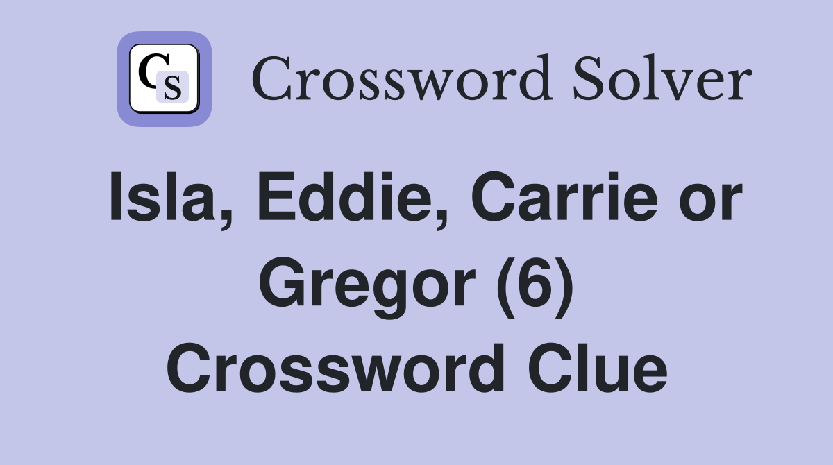 Isla Eddie Carrie or Gregor (6) Crossword Clue Answers Crossword