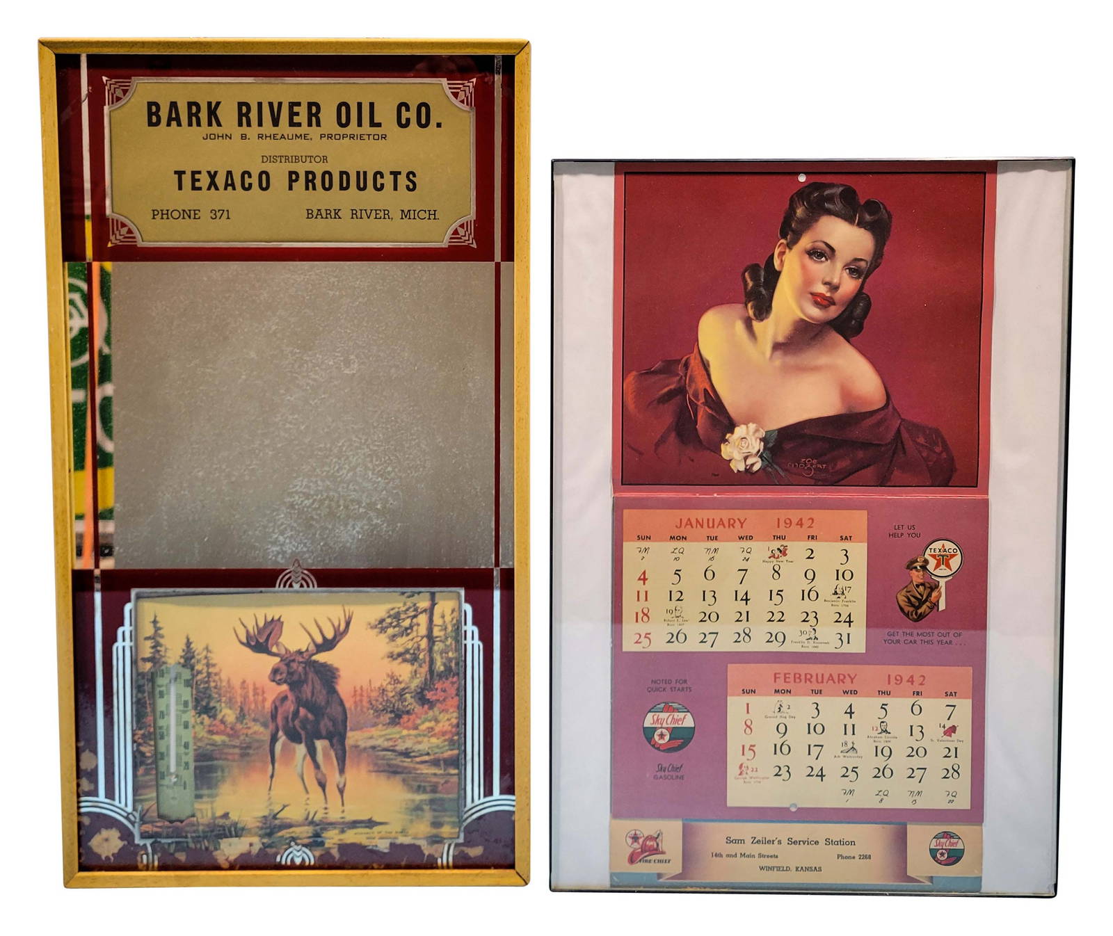 Lot Of 2 Texaco Items Bark River Oil Co Michigan W/ Moose Framed 1942