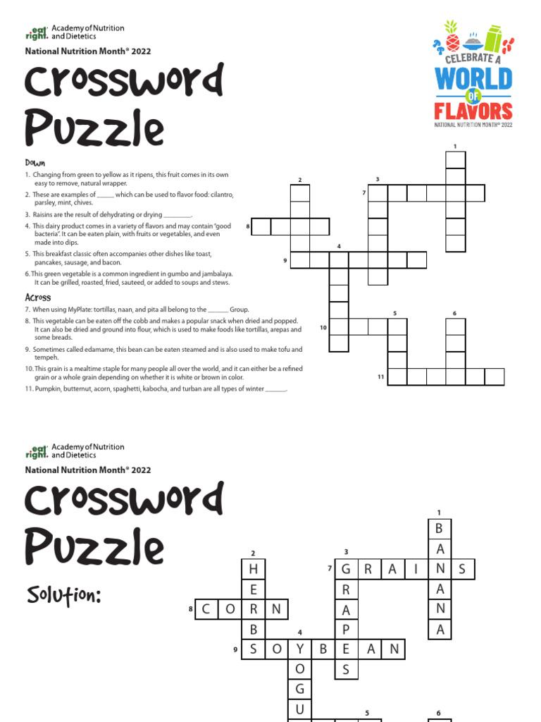 Crossword PDF European Cuisine Foods