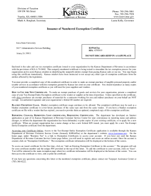 Fillable Online Kansas Department of Revenue Exemption Certificate