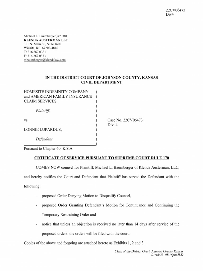 2023 01 17 Doc 12 Certificate of Service Pursuant To Supreme Court