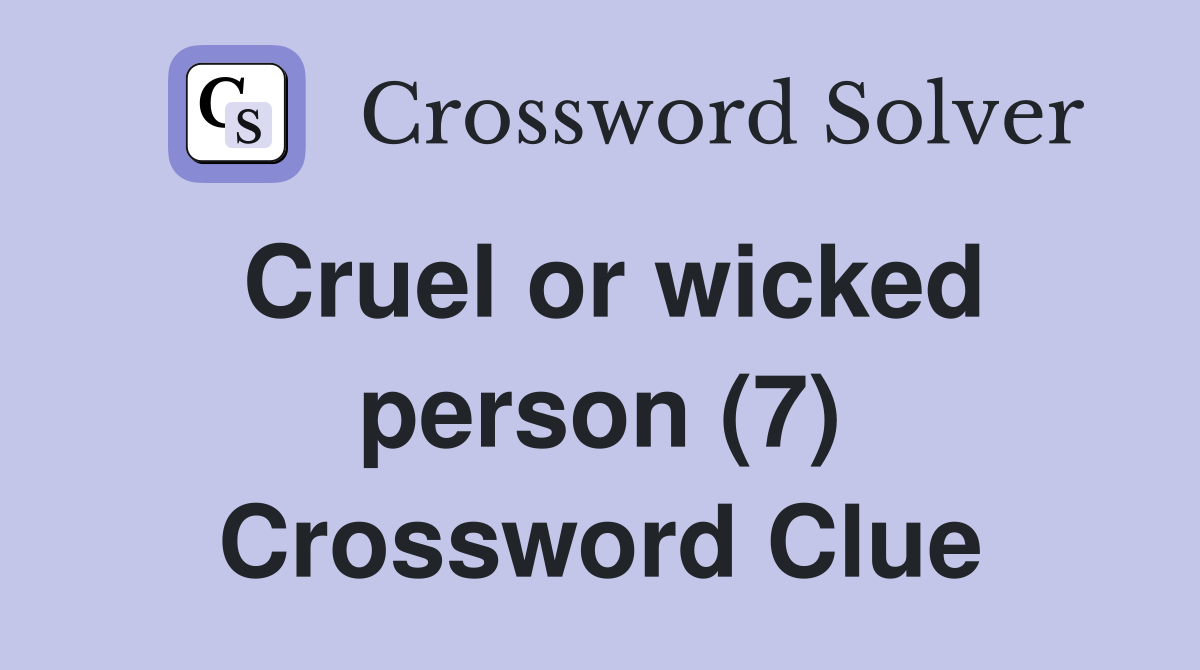 Cruel or wicked person (7) Crossword Clue Answers Crossword Solver