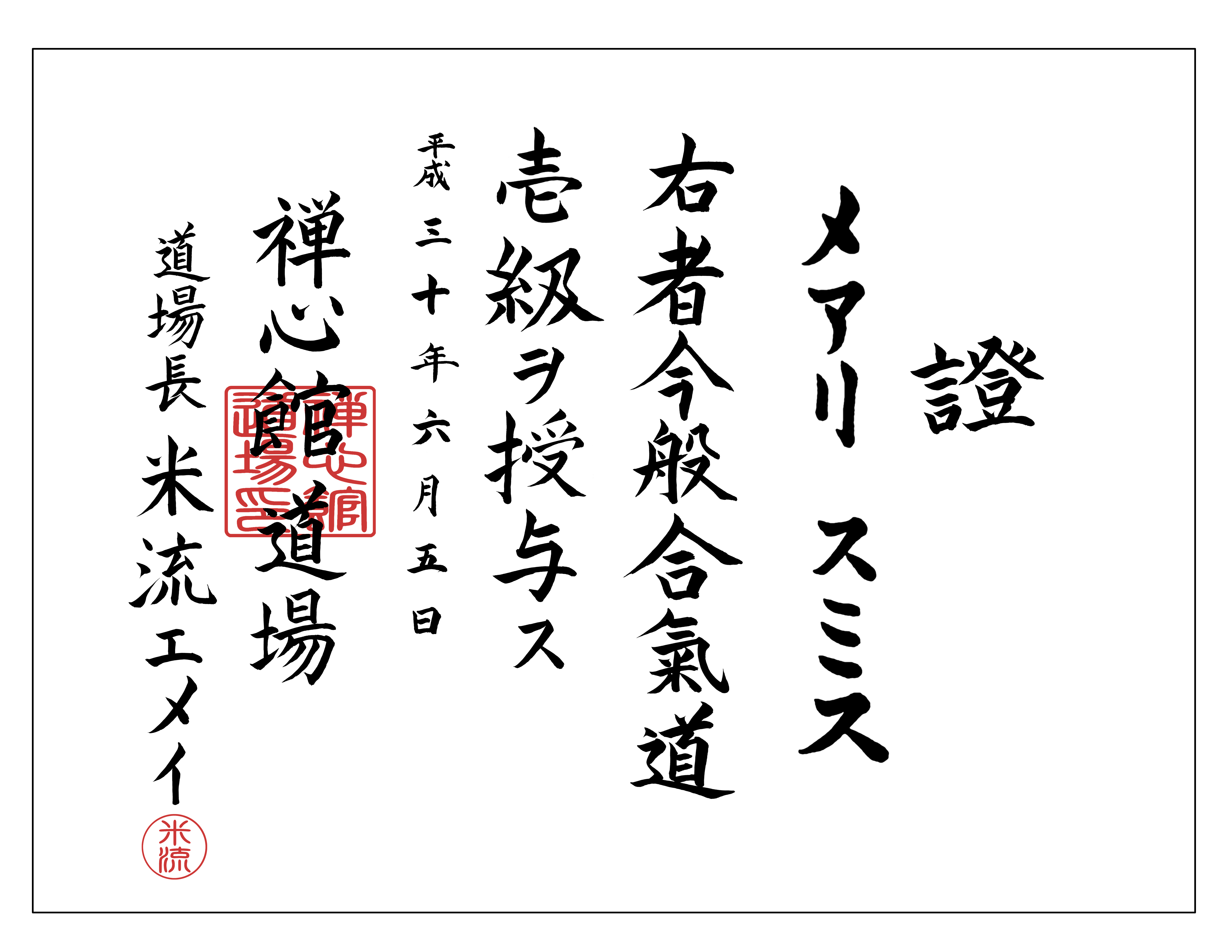 Japanese Karate Black Belt Certificate (landscape) 100% Customizable