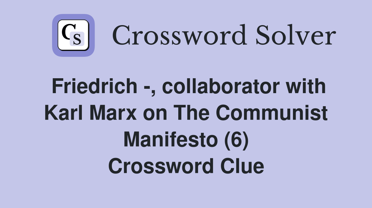 Karl Marx s closest collaborator (surname) (6) Crossword Clue Answers