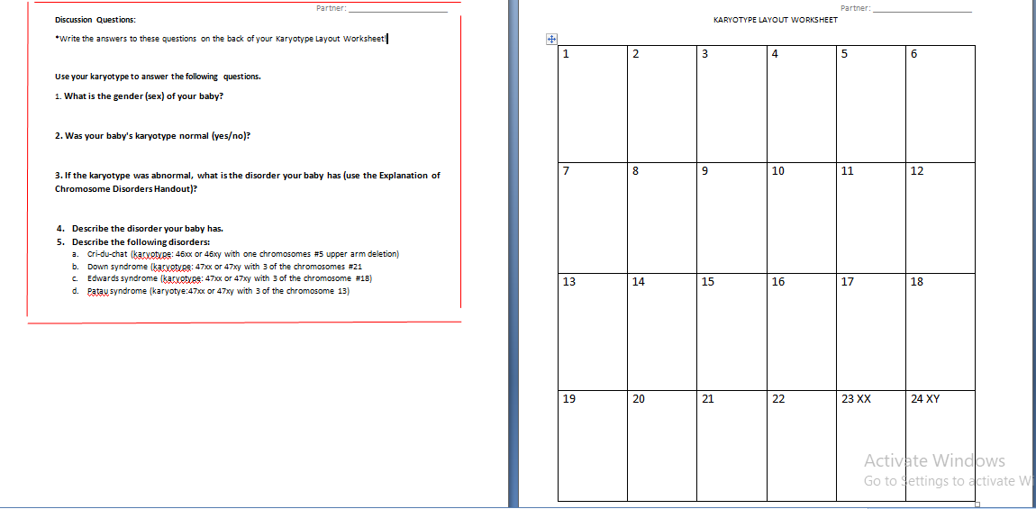 Partner Discussion Questions: Partner: KARYOTYPE Chegg com